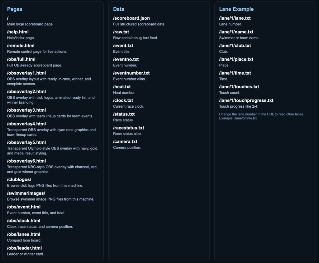 A web server is available on port 8765 when the software is loaded , this will allow a full array of endpoints to allow link with other systems along with the links for the OBS overlays